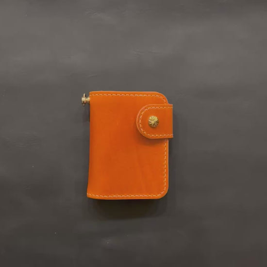 Handcrafted Biker wallet made using highest quality Gaucho Oil Orange Vegetable Tanned Leather comes from Conceria La Bretagna Tannery in Italy. It will hold up to the most rugged of use and develop a beautiful and unique patina over time.